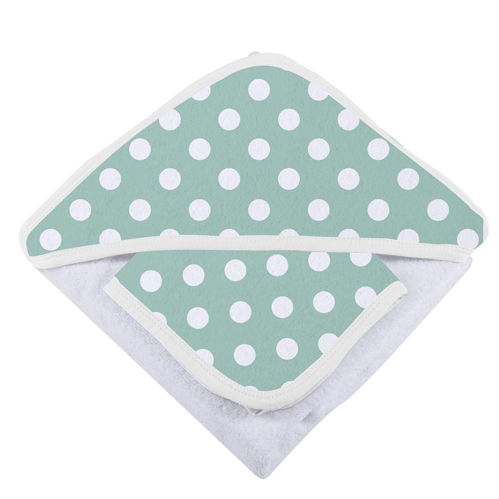 Jade Polka Dot Cotton Hooded Towel and Washcloth Set