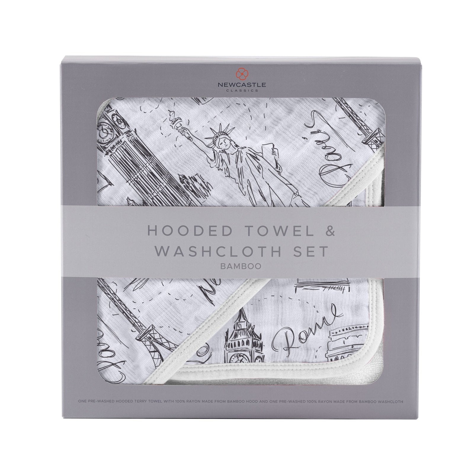 London, Paris, New York Bamboo Hooded Towel and Washcloth Set