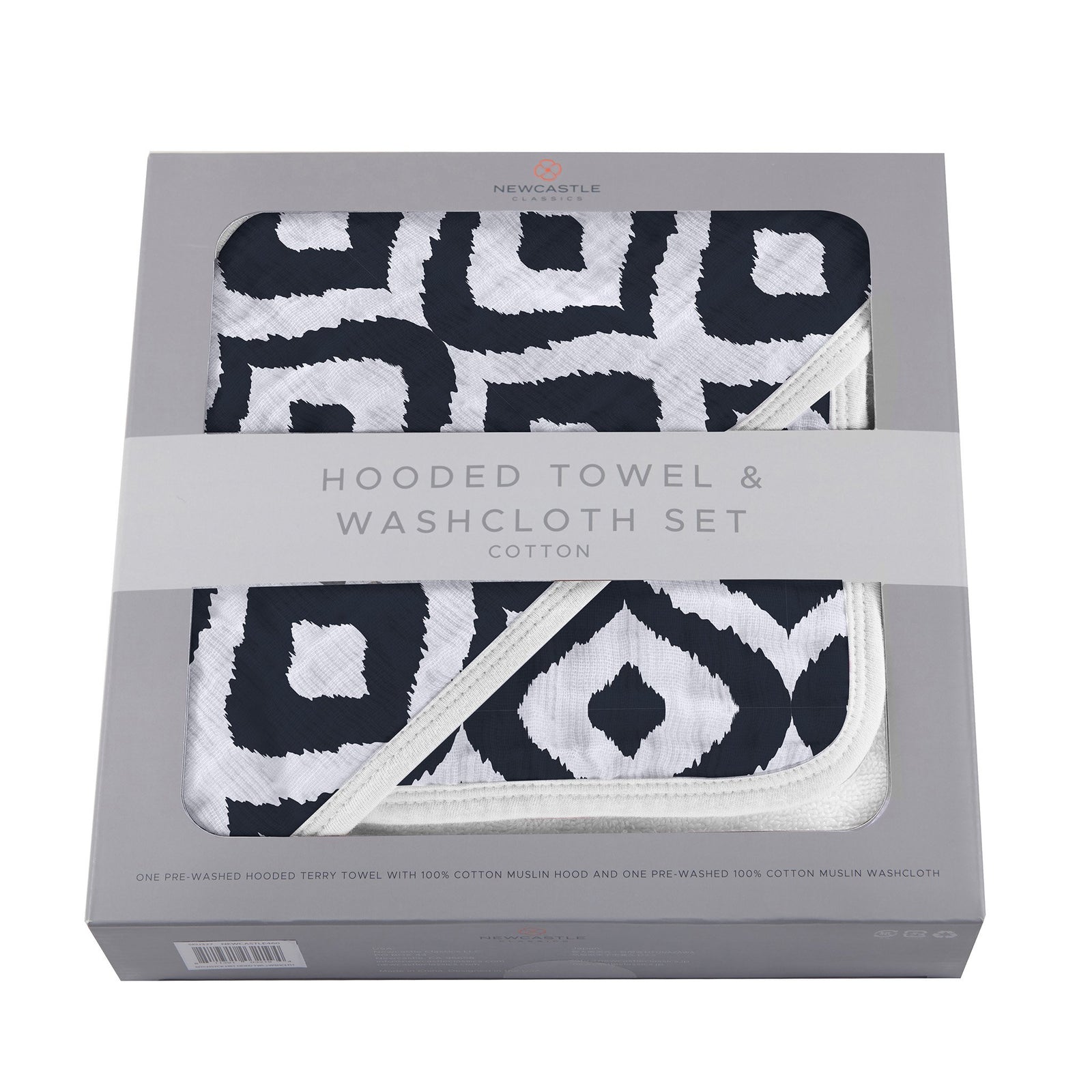 Moroccan Blue Hooded Towel and Washcloth Set.