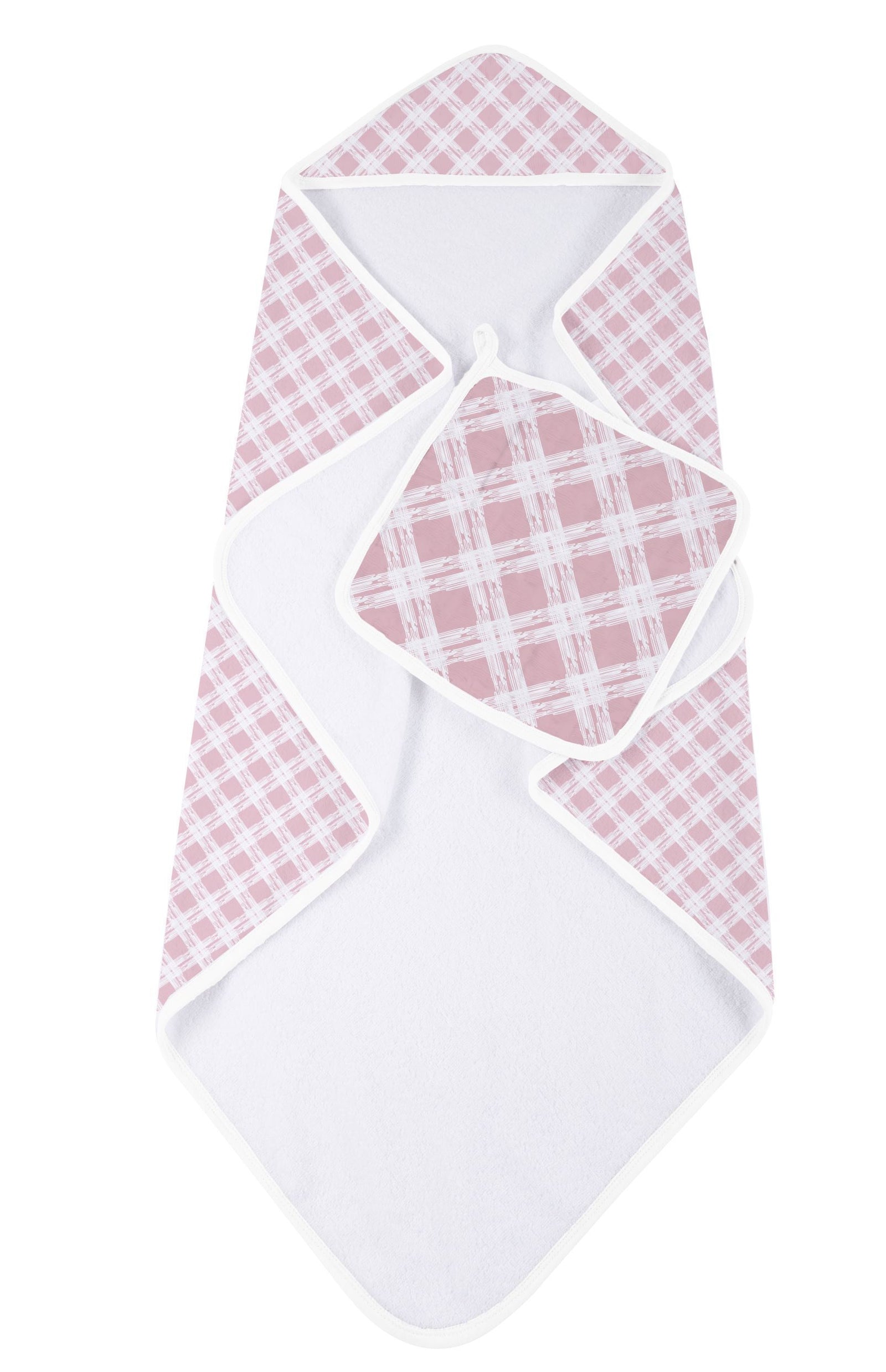 Pink Plaid Cotton Hooded Towel and Washcloth Set