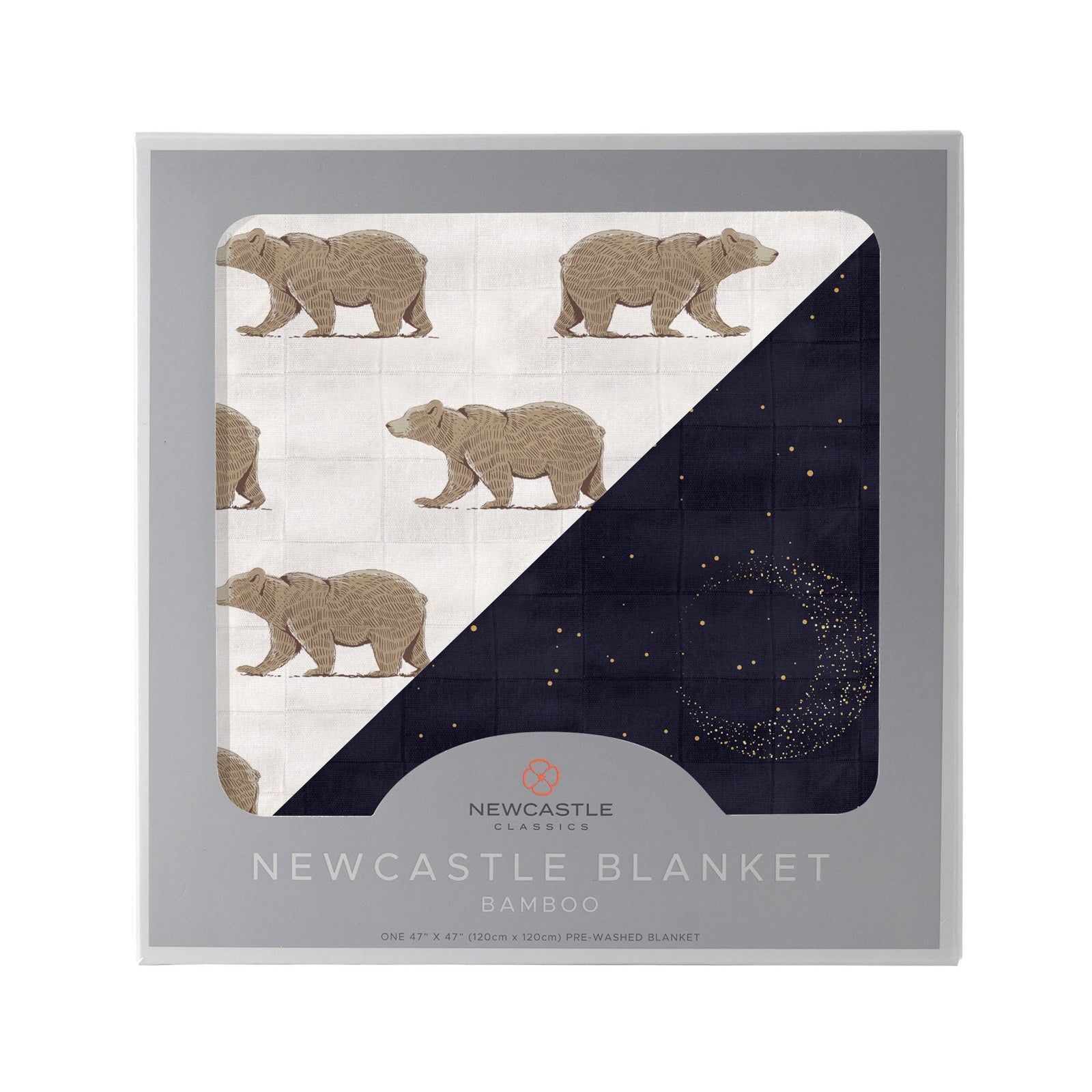 Goodnight Bear and Midnight Moon Bamboo Muslin Newcastle Blanket