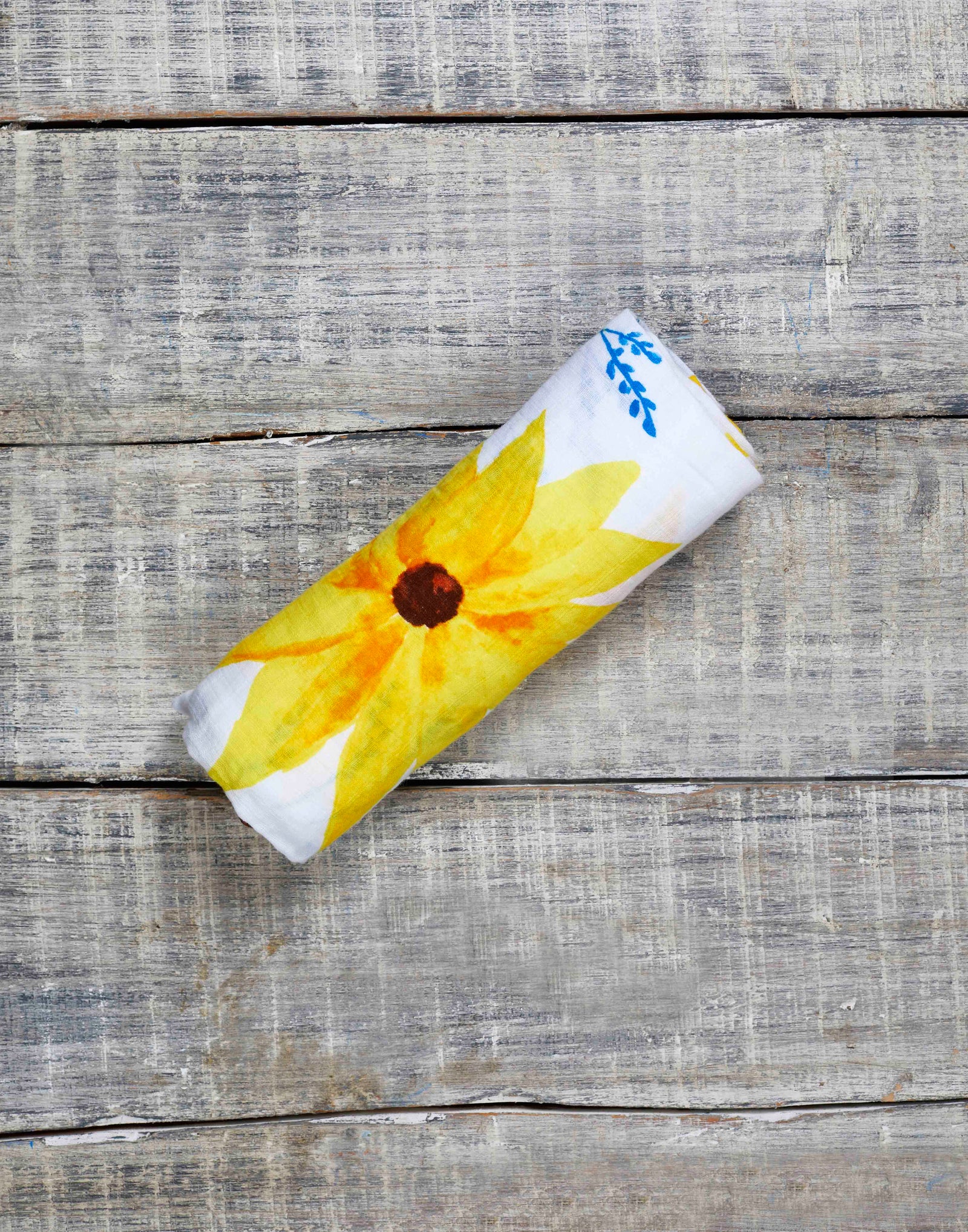 Sunflowers for days - An instant cheerful swaddle wrap that is bright and beautiful!
