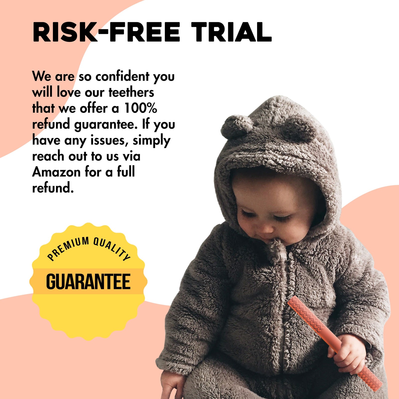 Lil' Tots Teether Tubes are Dishwasher Safe and can be cleaned via Warm Water & Soap!All Senso Minds products are covered by 100-Day Trial Guarantee. Should our product not meet your expectation we will refund or exchange your order, no questions asked.