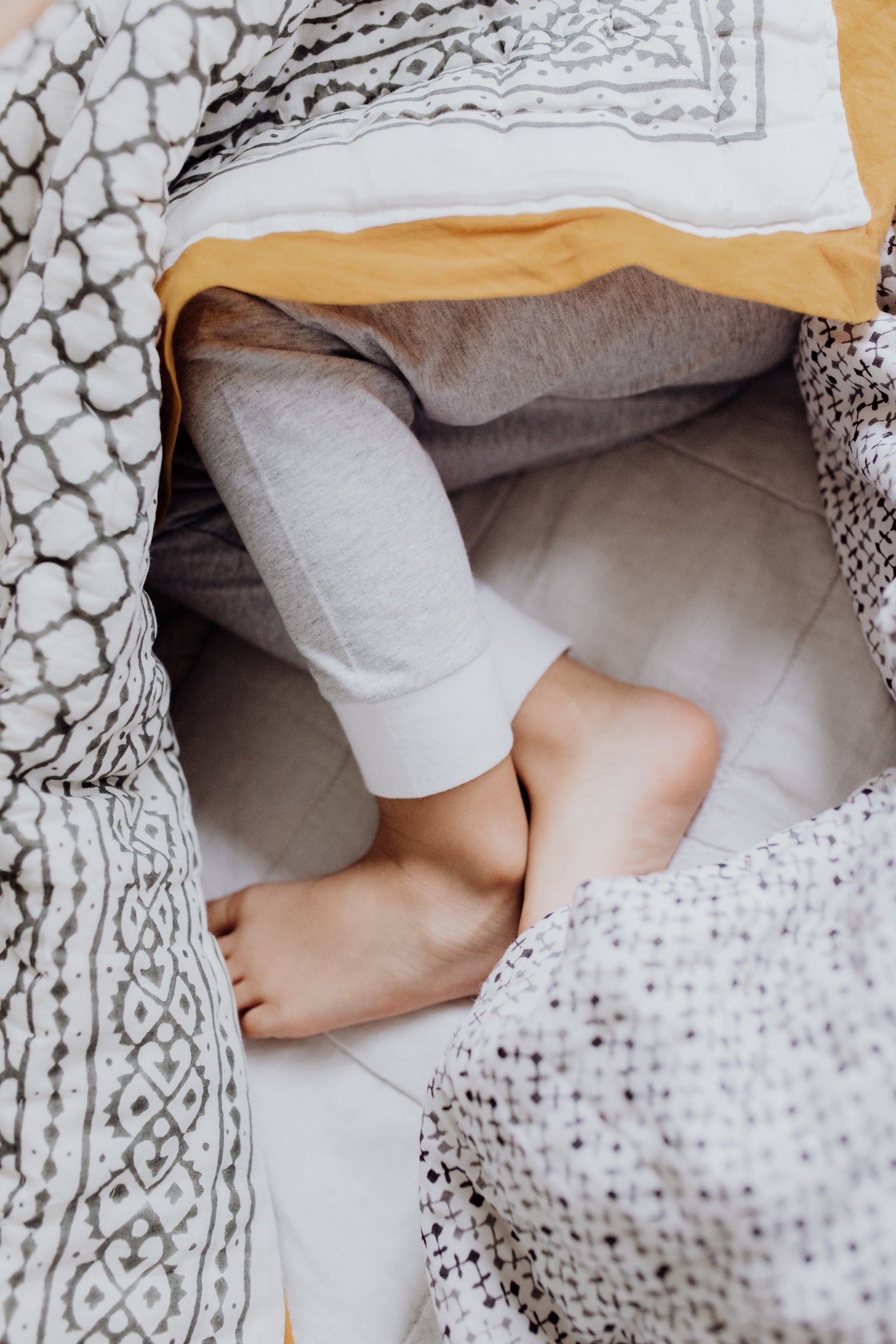 Sizes run big for extra long wear and have ribbed cuffs on bottoms to ensure your little ones won't trip. Size 6 mos and 12 mos (only) come with a snap button on the collar for easy removal. We do not recommend sizing up as our cotton is pre-washed.
